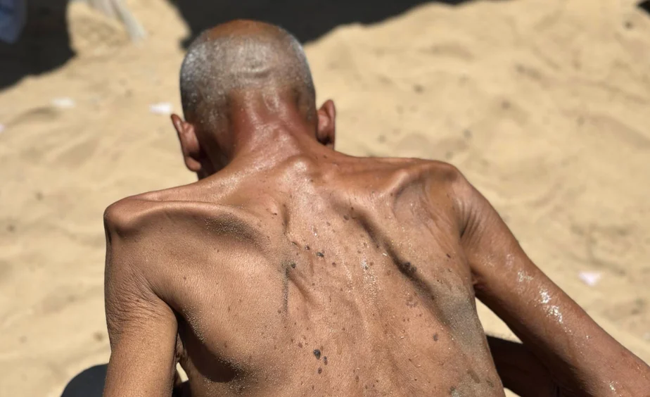 A 85 éves Salim Asfour, aki egy szövetből és nejlonból készült rögtönzött sátorban él Khan Younistól nyugatra, Dél-Gázában, már mintegy 35 kilogrammot fogyott, és most már azzal is küzd, hogy álljon.